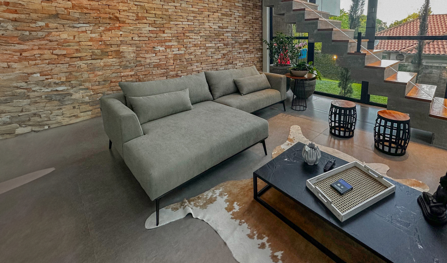 União entre beleza e sustentabilidade. Base feita de madeira maciça sustentável com acabamento em selador e verniz semi fosco. Tampo resistente em MDF tamburato com reforços internos em tubos de aço, complementado por vidro cristal pintado para sofisticação e durabilidade.